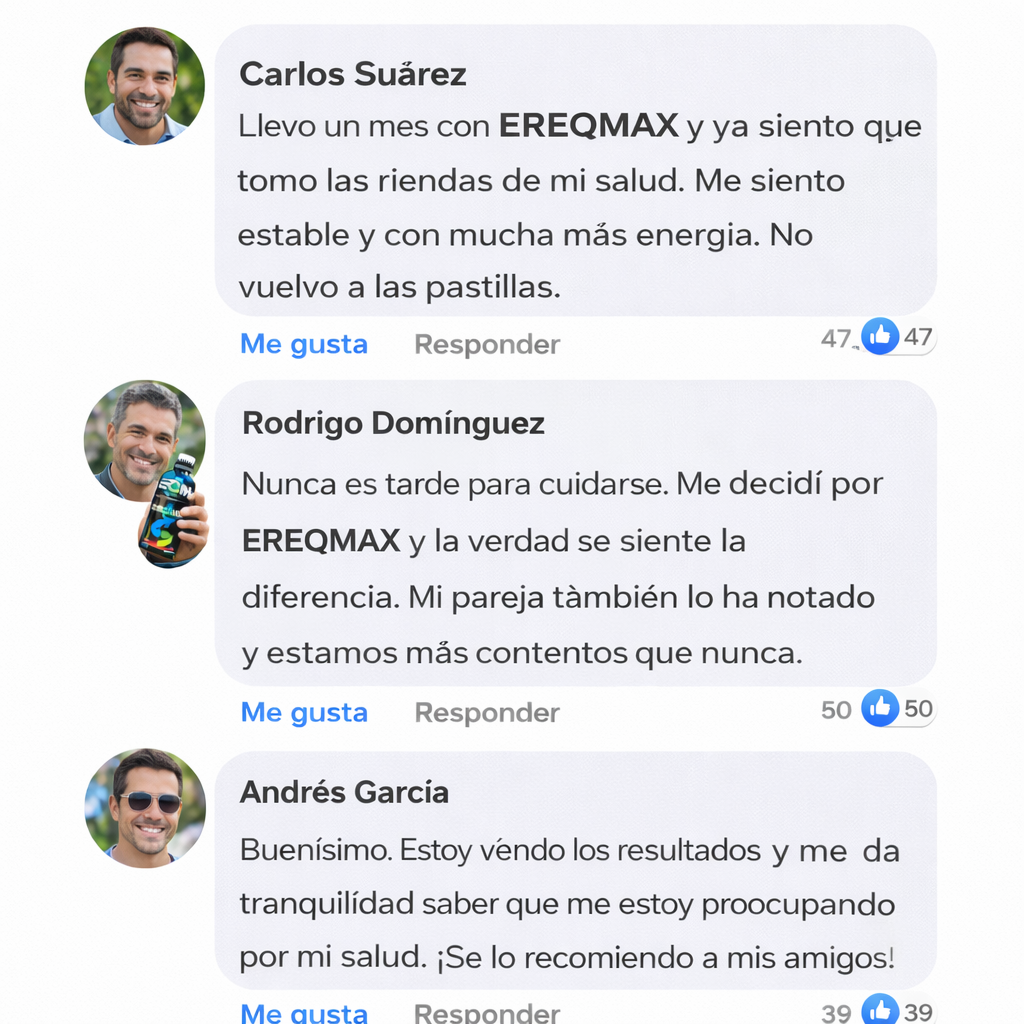 Es normal dudar. Justamente por eso EREQMAX está pensado como cuidado preventivo, no como una solución extrema. Cada cuerpo es diferente, pero lo que muchos hombres buscan aquí es tranquilidad, constancia y apoyo diario, no promesas milagro. Por eso tantos hombres lo integran a su rutina antes de que aparezcan problemas mayores.